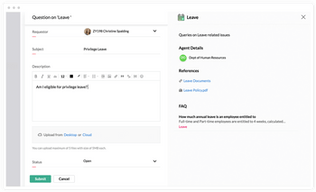 - Case Management: With the case management module, HR can categorize every question raised by employees, assign a dedicated agent, and manage the cases through comments.